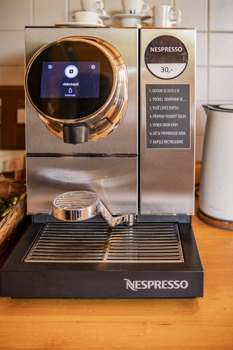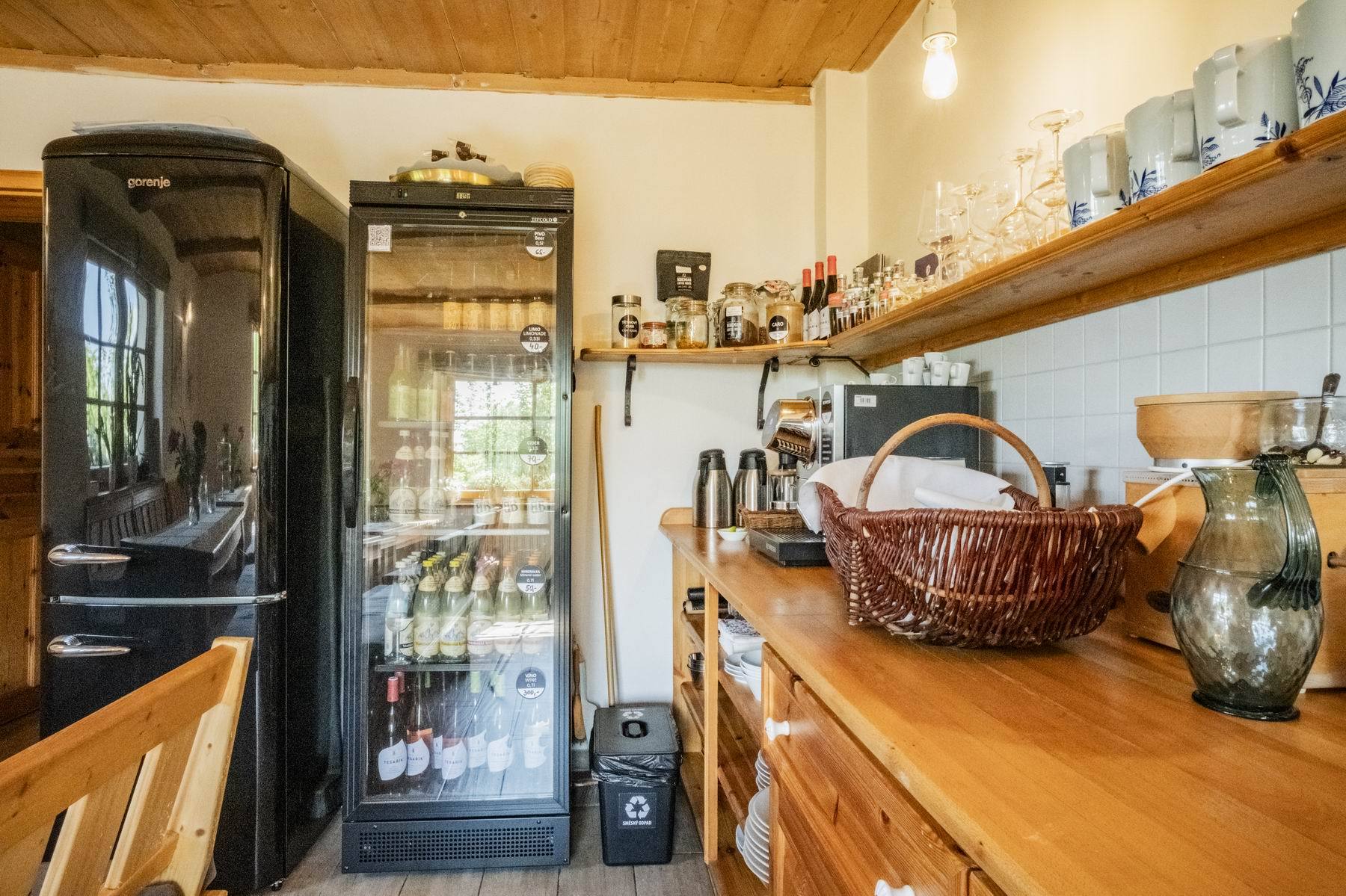 24 Stunden am Tag im Speisesaal geöffnet. Kocour Bier, BBCider, Kocour Limonaden, Liköre der Destilerie Galli, Vratislavská kyselka, Tesařík Weine und Heißgetränke: Nespresso Kaffee, French-Press-Kaffee und verschiedene Teesorten. Außerdem erwarten Sie hausgemachte Kekse, Käse vom Bauernhof Hampl, hausgemachte Überraschungen und Obst.