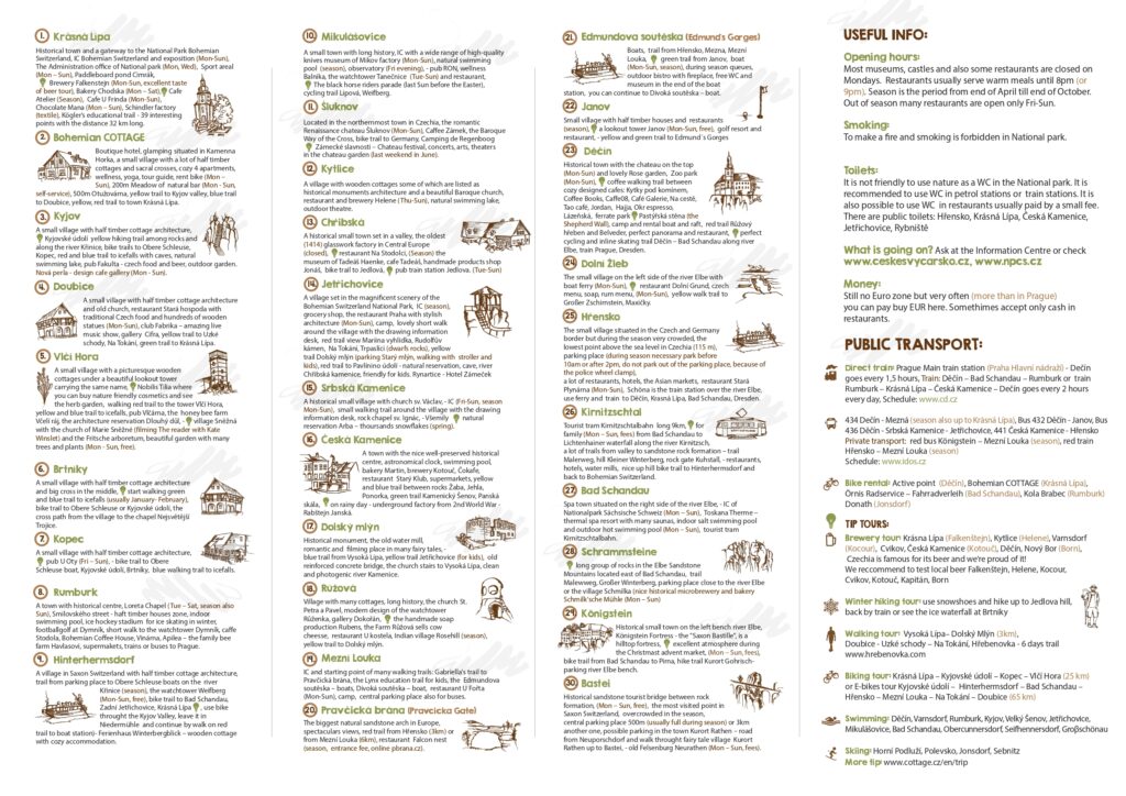 We have created a simple tourist map of part of Bohemian Saxon Switzerland and the Lusatian Mountains in A5 format for you. Free to download and print here(pdf). If some one like paper version, possible pick up in Bohemian Cottage.